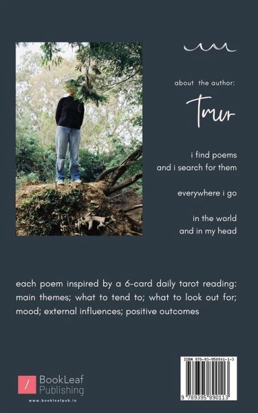 each poem inspired by a 6-card daily tarot reading: main themes; what to tend to; what to look out for; mood; external influences; positive outcomes