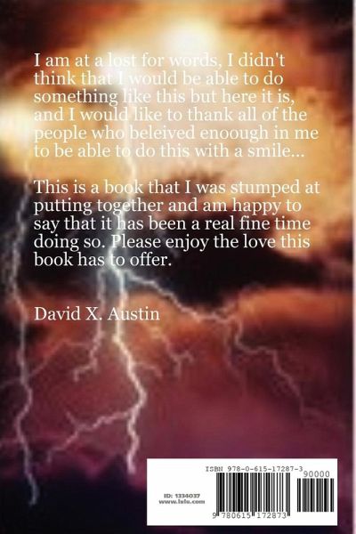 I am at a lost for words, I didn't think that I would be able to do something like this but here it is, and I would like to thank all of the people who beleived enoough in me to be able to do this with a smile... This is a book that I was stumped at putting together and am happy to say that it has been a real fine time doing so. Please enjoy the love this book has to offer. David X. Austin
