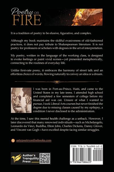 It is a tradition of poetry to be elusive, figurative, and complex. Although my book maintains the skillful evasiveness of old-fashioned practices, it does not pay tribute to Shakespearean literature. It is not poetry for professors or scholars with degrees in the art of interpretation. My poetry, written in the language of the working class, is designed to evoke feelings or paint vivid scenes-yet presented metaphorically, connecting to the routines of everyday life. Unlike first-rate poesy, it embraces the harmony of street talk and an effortless choice of words, flowing naturally to convey an idea or a dream.