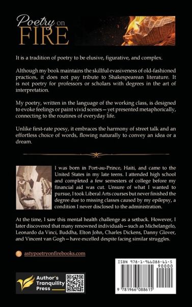 It is a tradition of poetry to be elusive, figurative, and complex. Although my book maintains the skillful evasiveness of old-fashioned practices, it does not pay tribute to Shakespearean literature. It is not poetry for professors or scholars with degrees in the art of interpretation. My poetry, written in the language of the working class, is designed to evoke feelings or paint vivid scenes-yet presented metaphorically, connecting to the routines of everyday life. Unlike first-rate poesy, it embraces the harmony of street talk and an effortless choice of words, flowing naturally to convey an idea or a dream.