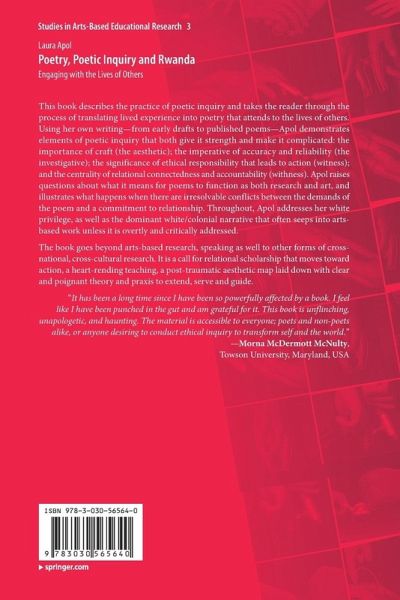 This book describes the practice of poetic inquiry and takes the reader through the process of translating lived experience into poetry that attends to the lives of others. Using her own writing-from early drafts to published poems-Apol demonstrates elements of poetic inquiry that both give it strength and make it complicated: the importance of craft (the aesthetic); the imperative of accuracy and reliability (the investigative); the significance of ethical responsibility that leads to action (witness); and the centrality of relational connectedness and accountability (withness). Apol raises questions about what it means for poems to function as both research and art, and illustrates what happens when there are irresolvable conflicts between the demands of the poem and a commitment to relationship. Throughout, Apol addresses her white privilege, as well as the dominant white/colonial narrative that often seeps into arts-based work unless it is overtly and critically addressed.