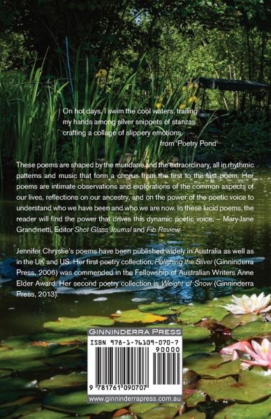 'These poems are shaped by the mundane and the extraordinary, all in rhythmic patterns and music that form a chorus from the first to the last poem. Her poems are intimate observations and explorations of the common aspects of our lives, reflections on our ancestry, and on the power of the poetic voice to understand who we have been and who we are now. In these lucid poems, the reader will find the power that drives this dynamic poetic voice.' - Mary-Jane Grandinetti, Editor Shot Glass Journal and Fib Review