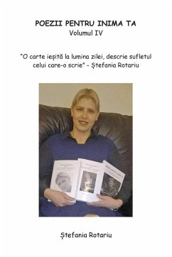 Despre Autoare ¿tefania Rotariu s-a n¿scut în 27 Decembrie 1963, în localitatea Sucevi¿a din jude¿ul Suceava, România. O parte din copil¿rie ¿i-a petrecut-o în frumoasa Bucovin¿, unde a fost s¿dit¿ s¿mân¿a inspiräiei. Începe s¿ scrie poezii de la o vârst¿ fraged¿. Public¿ cinci volume de poezii (POEZII PENTRU INIMA TA), cum ar fi publicarea volumului I de poezii în vara anului 2012 (America), volumele II, III de poezii publicate în vara anului 2014 (Anglia) ¿i volumele IV, V de poezii publicate în februarie 2023 (Anglia). Se dedic¿ vie¿ii culturale ¿i devine membr¿ a Uniunii Scriitorilor din Anglia în anul 2012. În 2017 devine jurnalist¿ britanic¿ ¿i în 2020 prime¿te calificarea de jurnalist¿ internäional¿. Lucreaz¿ 1 an cu televiziunea FRP TV, ca moderatoare si realizatoare a emisiunii ''În C¿utarea Adev¿rului'', continuând cu munca jurnalistic¿. Particip¿ la Festivalul Internäional de Poezie ¿i Epigram¿ (Romeo ¿i Julieta la Mizil) ¿i la Colec¿ia Antologic¿ de Poezie (Cu Patria în Suflet - de drag, de jale ¿i de dor) în România. Colaboreaz¿ cu diferi¿i soli¿ti punând versurile pe muzic¿, distribuite pe Youtube