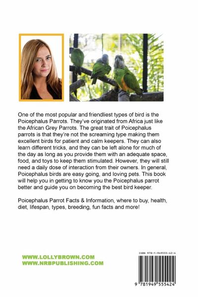 One of the most popular and friendliest types of bird is the Poicephalus Parrots. They've originated from Africa just like the African Grey Parrots. The great trait of Poicephalus parrots is that they're not the screaming type making them excellent birds for patient and calm keepers. They can also learn different tricks, and they can be left alone for much of the day as long as you provide them with an adequate space, food, and toys to keep them stimulated. However, they will still need a daily dose of interaction from their owners. In general, Poicephalus birds are easy going, and loving pets. This book will help you in getting to know you the Poicephalus parrot better and guide you on becoming the best bird keeper. Poicephalus Parrot Facts & Information, where to buy, health, diet, lifespan, types, breeding, fun facts and more!