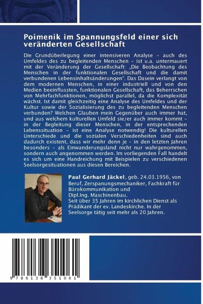 Die Grundüberlegung einer intensiveren Analyse - auch des Umfeldes des zu begleitenden Menschen - ist u.a. untermauert mit der Veränderung der Gesellschaft: "Die Beobachtung des Menschen in der funktionalen Gesellschaft und die damit verbundenen Lebensinhaltsänderungen". Das Dasein verlangt von dem modernen Menschen, in einer industriell und von den Medien beeinflussten, funktionalen Gesellschaft, das Beherrschen von Mehrfachfunktionen, möglichst parallel, da die Komplexität wächst. Ist damit gleichzeitig eine Analyse des Umfeldes und der Kultur sowie der Sozialisierung des zu begleitenden Menschen verbunden? Welchen Glauben mein Gegenüber auch immer hat, und aus welchem kulturellen Umfeld sie/er auch immer kommt - in der Begleitung dieser Menschen, in der entsprechenden Lebenssituation - ist eine Analyse notwendig! Die kulturellen Unterschiede und die sozialen Verschiedenheiten sind auch dadurch existent, dass wir mehr denn je - in den letzten Jahren besonders - als Einwanderungsland nicht nur wahrgenommen, sondern auch angenommen werden. Im vorliegenden Fall handelt es sich um eine Handreichung mit Beispielen zu verschiedenen Seelsorgesituationen aus diesen Bereichen.