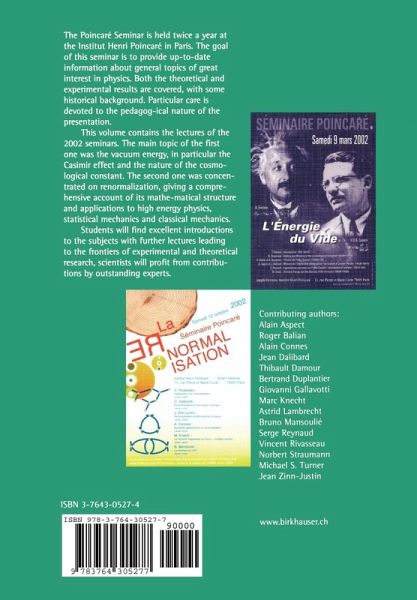 The Poincaré Seminar is held twice a year at the Institut Henri Poincaré in Paris. This volume contains the lectures of the 2002 seminars. The main topic of the first one was the vacuum energy, in particular the Casimir effect and the nature of the cosmological constant. The second one concentrated on renormalization, giving a comprehensive account of its mathematical structure and applications to high energy physics, statistical mechanics and classical mechanics.