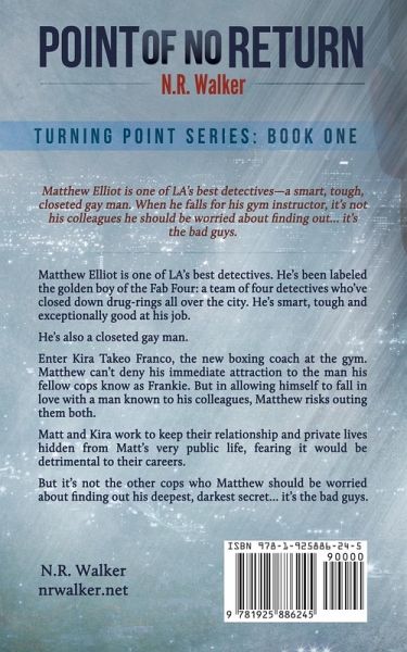 Book one in the Turning Point Series Matthew Elliot is one of LA’s best detectives. He’s been labeled the golden boy of the Fab Four: a team of four detectives who’ve closed down drug-rings all over the city. He’s smart, tough and exceptionally good at his job. He’s also a closeted gay man. Enter Kira Takeo Franco, the new boxing coach at the gym. Matthew can’t deny his immediate attraction to the man his fellow cops know as Frankie. But in allowing himself to fall in love with a man known to his colleagues, Matthew risks outing them both. Matt and Kira work to keep their relationship and private lives hidden from Matt’s very public life, fearing it would be detrimental to their careers. But it’s not the other cops who Matthew should be worried about finding out his deepest, darkest secret… it’s the bad guys.