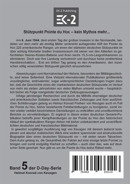 Mythos Pointe du Hoc ... Erfahren Sie, was sich während des D-Days wirklich an einer der stärksten deutschen Stellungen abspielte!Normandie, 6. Juni 1944: D-Day! Die Alliierten wagen den Sturm auf die "Festung Europa". Die Landung in der Normandie gilt als eine der größten Militäroperationen der Menschheitsgeschichte. Untrennbar mit ihr verknüpft sind menschliche Tragödien, militärische Fehlschläge, schier unglaubliche Einzelschicksale und abenteuerliche Geheimnisse ...Der renommierte D-Day-Experte und Historiker Helmut Konrad von Keusgen, bekannt aus einschlägigen Print-, Radio- und TV-Dokumentationen zum D-Day, ist weltweit geschätzt für seine in ihrer Art einzigartigen Aufarbeitung der historisch so bedeutsamen großen Invasion in der Normandie.Über dieses Buch: Mit dem vorliegenden Buch "Pointe du Hoc" lüftet der Autor den Mythos um die berühmt-berüchtigte deutsche Stellung auf dem Gipfel des berühmten Kliffs. Zahlreiche Falschdarstellungen, insbesondere in US-amerikanischen Medien, führten zu Legenden über die Ereignisse an der Pointe du Hoc, als amerikanische Ranger am 6. Juni 1944 spektakulär am Fuße des Kliffs landen. Unter stärkstem Beschuss erklommen sie die Steilwände. Sie benötigten drei volle Tage, um das Kliff gänzlich zu erobern. Der deutsche Widerstand war bis zuletzt enorm; die Ranger verloren mehr als die Hälfte ihrer Männer.Später nahmen es die Amerikaner mit der Wahrheit nicht so genau, um der Heldenverklärung ihrer Ranger den Weg zu ebnen. Erst Helmut Konrad von Keusgen deckte durch seine unermüdliche Arbeit die Wahrheit auf, die er in diesem Buch präzise und ungeschönt mit der Welt teilt.Gerade die Zeitzeugenberichte aus erster Hand legen die ganze Wahrheit über die Kämpfe frei!Was Sie von diesem Buch erwarten dürfen:Unzählige Originalfotos und Illustrationen lassen den Kampf um Pointe du Hoc vor Ihren Augen lebendig werdenDie gebundene Ausgabe bietet zahlreiche Farbbilder; das Taschenbuch ist umweltschonend in schwarz-weiß gedrucktProfitieren Sie von einmaligen Einblicken durch zahlreiche ZeitzeugenberichteFreuen Sie sich auf eine minutiöse Nacherzählung der Kampfhandlungen und ihrer NachwirkungenDetaillierte, vom Autor erstellte Karten verdeutlichen Ihnen die militärische Situation während der Schlacht um das KliffSichern Sie sich jetzt dieses einzigartige Werk über die harten Gefechte an der Pointe du Hoc!