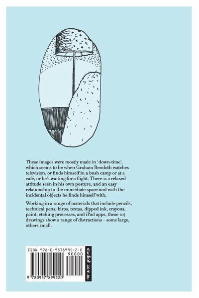 Graham Rendoth is an artist, designer, educator, photographer and writer, Graham's work has appeared in many publications. His first book of drawings, As a Boy, was published in 1984. Other books and edition publications have since been published. Born in the Australian rural town of Tamworth, Graham grew up in the suburbs of Sydney, went to Punchbowl Boys High School and studied Visual Communications at Sydney College of the Arts. He is founder of Reno Design creative consultancy, located in the heart of Sydney, a city that continues to inspire him. The images in this book were mostly made in 'down-time', which seems to be when Graham Rendoth watches television, or finds himself in a bush camp or at a café, or he's waiting for a flight. There is a relaxed attitude seen in his own posture, and an easy relationship to the immediate space and with the incidental objects he finds himself with. Produced in a range of materials that include pencils, technical pens, biros, textas, dipped ink, crayons, paint, etching processes, and iPad apps, these 114 drawings show a range of distractions - some large, others small.