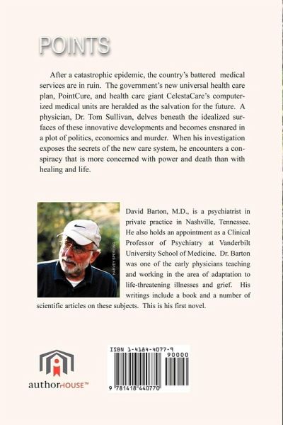 The revolutionary antibiotic Lilacicin brings an end to a catastrophic epidemic, but depleted health care resources and the use of this expensive new medication leave the country's battered medical services in financial ruin. To revitalize the system, the government unveils its innovative universal health care plan, PointCure, and health care giant CelestaCare installs its modern cost-cutting computerized treatment units in hospitals across the nation. This newly designed health care system combination is heralded as the salvation for the future. An imminent physician, Dr. Tom Sullivan, leaves his teaching position at Devan Medical Center to become medical director of CelestaCare's flagship hospital. There he plans to give instruction about humanizing the mechanistic and impersonal automated treatment units. Instead, however, he soon becomes ensnared in a devious plot of politics, economics and murder. Probing the secrets of the chillingly dehumanizing care units, he discovers that the futuristic health care system is intertwined with a bizarre new religious order and encounters a conspiracy that is far more concerned with power and death than with and healing and life.