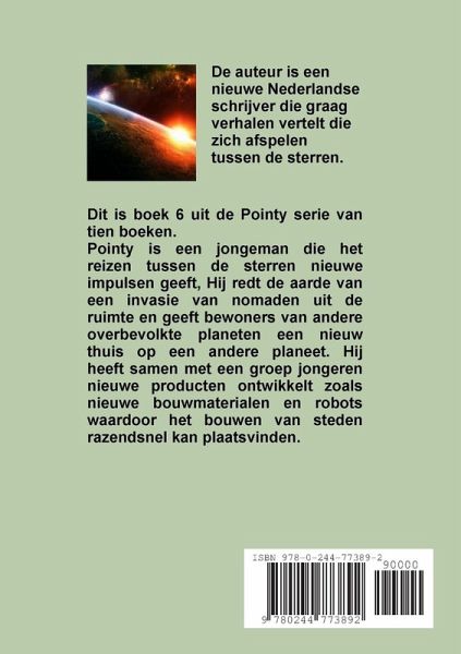 Dit boek is deel zes uit de Pointy serie. Pointy is een jongeman die planeten een oplossing geeft voor hun problemen. Zo redt hij de aarde van een invasie van zwervende nomaden. Hij helpt die nomaden aan eigen planeten om op te leven. hij ontwikkeld een nieuwe bouwstof die uitmuntend geschikt is voor gebouwen. met behulp van nieuwe robots kunnen er binnen drie maanden hele steden worden gebouwd.
