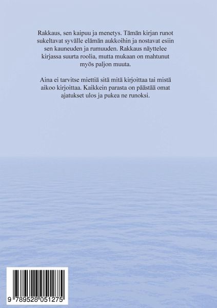 Rakkaus, sen kaipuu ja menetys. Tämän kirjan runot sukeltavat syvälle elämän aukkoihin ja nostavat esiin sen kauneuden ja rumuuden. Rakkaus näyttelee kirjassa suurta roolia, mutta mukaan on mahtunut myös paljon muuta. Aina ei tarvitse miettiä sitä mitä kirjoittaa tai mistä aikoo kirjoittaa. Kaikkein parasta on päästää omat ajatukset ulos ja pukea ne runoksi.
