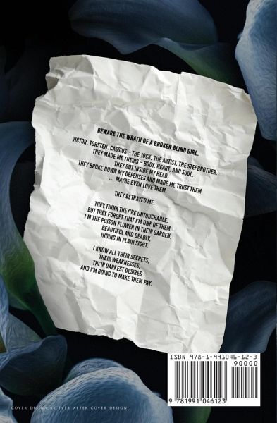 Beware the wrath of a broken blind girl. Victor. Torsten. Cassius - the jock, the artist, the stepbrother. They made me theirs - body, heart, and soul. They got inside my head. They broke down my defenses and made me trust them ... maybe even love them. They betrayed me. They think they're untouchable, but they forget that I'm one of them. I'm the poison flower in their garden, beautiful and deadly, hiding in plain sight. I know all their secrets, Their weaknesses, Their darkest desires, And I'm going to make them pay. Poison Flower is a new adult, dark contemporary romance with three hot, dangerous guys and the blind girl who rules them. It is intended for 18+ readers.