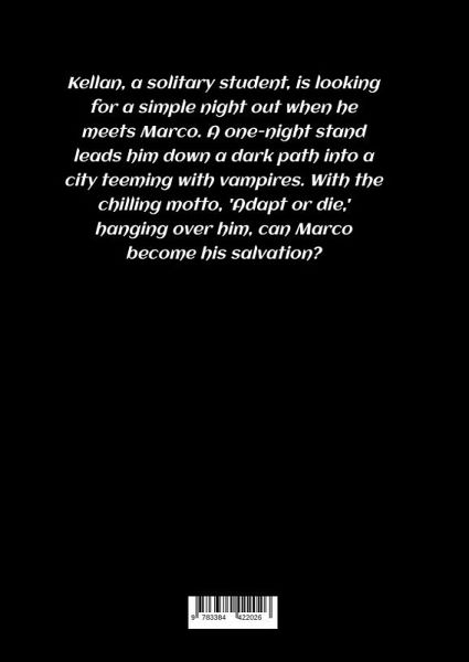 Kellan, a solitary student, is looking for a simple night out when he meets Marco. A one-night stand leads him down a dark path into a city teeming with vampires. With the chilling motto, 'Adapt or die,' hanging over him, can Marco become his salvation?