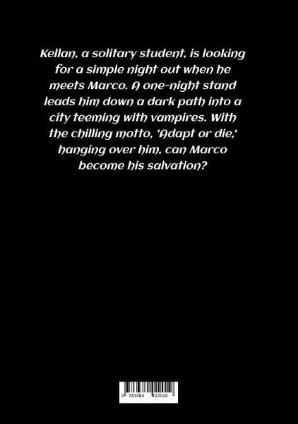 Kellan, a solitary student, is looking for a simple night out when he meets Marco. A one-night stand leads him down a dark path into a city teeming with vampires. With the chilling motto, 'Adapt or die,' hanging over him, can Marco become his salvation?