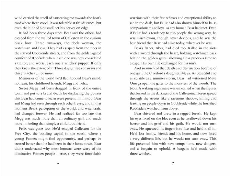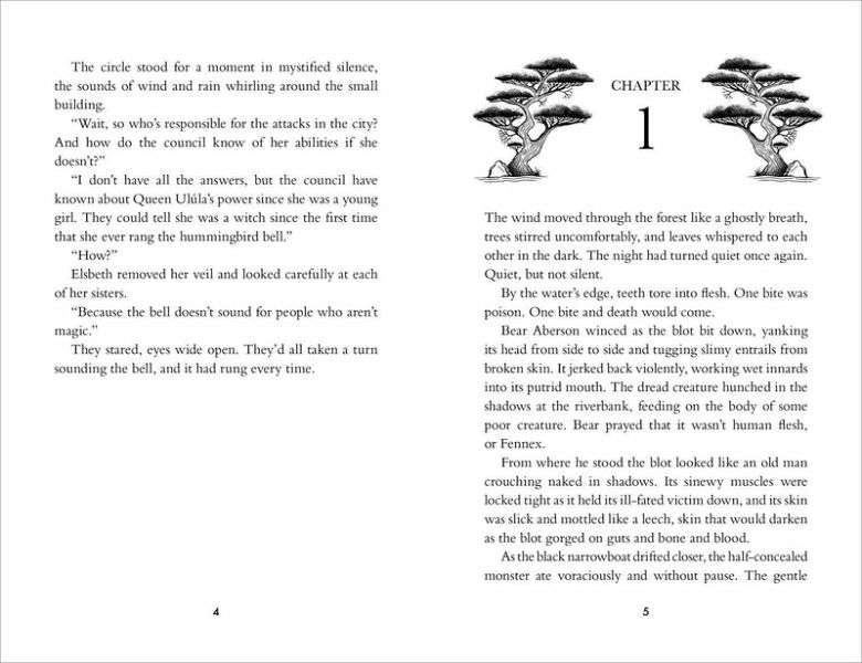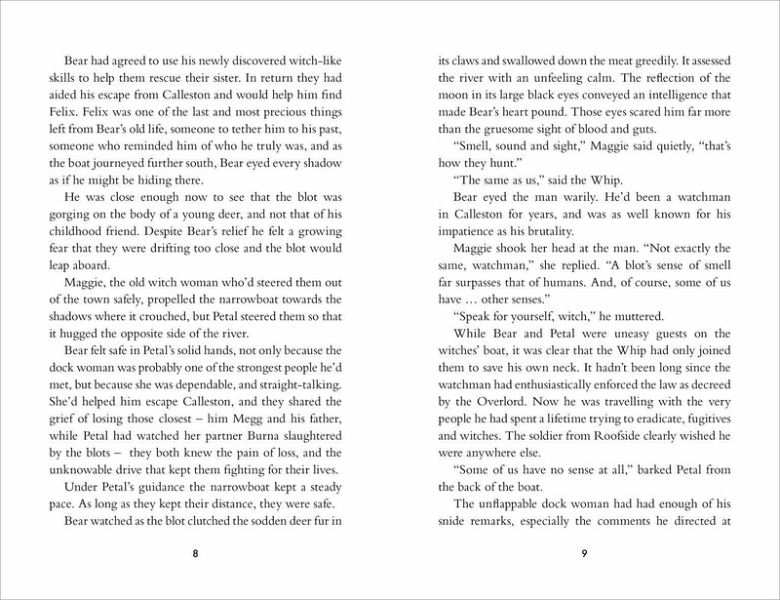 Bear has lived in Calleston his entire life, closed in by the walls that surround the queendom, but now he has the chance for freedom as he traverses the great wildernesses on a small black narrowboat, accompanied by three powerful witches.