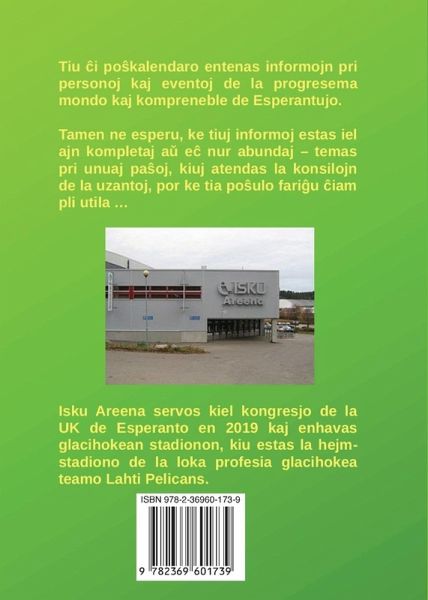 Pökalendaro en Esperanto, en la formato 12,7 · 17,8 cm (= 5 · 7 "), kun indikoj pri memortagoj de homoj kaj eventoj de la progresema kaj Esperantista mondo (ka kun tabeloj de la jaro 2020).
