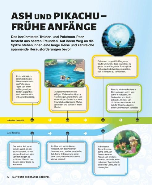 Stöbere durch Seiten mit Zeitlinien, die mit faszinierenden Fakten, Bildern und wichtigen Details aus allen 25 Serien des Animes vollgepackt sind. Erlebe aufregende Handlungsstränge erneut. Begleite Pikachu, Charizard und viele weitere Pokémon sowie beliebte Charaktere, Teams und Rivalen auf ihren Reisen. Tauche ein in detaillierte Beschreibungen von fantastischen Turnieren. Erkunde Regionen und entdecke unglaubliche Abenteuer.