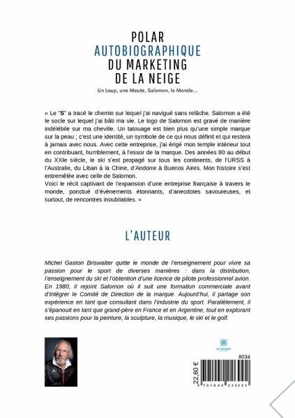 « Le ¿S¿ a tracé le chemin sur lequel j¿ai navigué sans relâche. Salomon a été le socle sur lequel j¿ai bâti ma vie. Le logo de Salomon est gravé de manière indélébile sur ma cheville. Un tatouage est bien plus qüune simple marque sur la peau ; c¿est une identité, un symbole de ce qui nous définit et qui restera à jamais avec nous. Avec cette entreprise, j¿ai érigé mon temple intérieur tout en contribuant, humblement, à l¿essor de la marque. Des années 80 au début du XXIe siècle, le ski s¿est propagé sur tous les continents, de l¿URSS à l¿Australie, du Liban à la Chine, d¿Andorre à Buenos Aires. Mon histoire s¿est entremêlée avec celle de Salomon. Voici le récit captivant de l¿expansion d¿une entreprise française à travers le monde, ponctué d¿événements étonnants, d¿anecdotes savoureuses, et surtout, de rencontres inoubliables. »