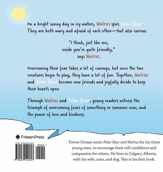 On a bright sunny day in icy waters, Walrus spies Polar Bear. They are both wary and afraid of each other-but also curious. "I think, just like me, inside you're quite friendly," says Walrus. Overcoming their fear takes a lot of courage, but once the two creatures begin to play, they have a lot of fun. Together, Walrus and Polar Bear become new friends and joyfully decide to keep their hearts open. Through Walrus and Polar Bear, young readers witness the triumph of overcoming fears of something or someone new, and the power of love and kindness.
