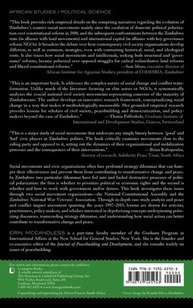 This book investigates polarization and prospects for transformation in Zimbabwe through the lens of social movements working for land redistribution and constitutional change. It examines their strategy dilemmas, the outcomes of their choices, and the implications for transformative change and peace.