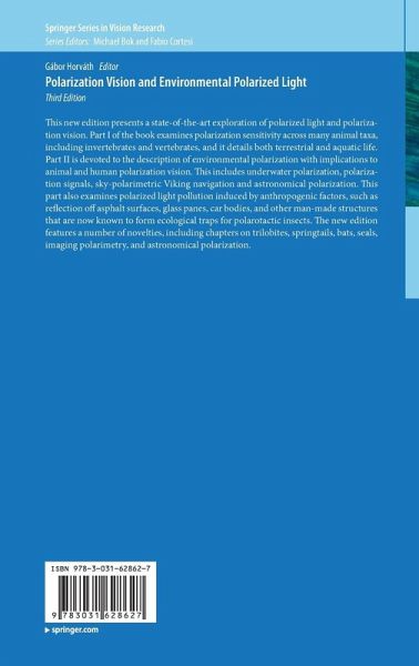 Part I: Polarization Sensitivity and Vision.- Polarization Sensitivity in the Vinegar Fly, Drosophila melanogaster.- Polarization Sensitivity in Bees (Apoidea).- Polarization Vision and Orientation in Ball-rolling Dung Beetles.- Polarization Sensitivity in Desert Locusts, Schistocerca gregaria.- Polarization Sensitivity in Butterflies.- Polarization Sensitivity in Tabanid Flies.- Horsefly Polarotaxis.- Circular Polarization Insensitivity in Scarab Beetles with Circularly Polarizing Exocuticle.- Polarization Sensitivity and Polarotaxis in Springtails (Collembola).- Polarization Sensitivity, Polarotaxis and Polarization-elicited Optomotor Response in Yellow Fever Mosquitoes (Aedes aegypti).- Polarotaxis in Mayflies.- Polarization Sensitivity and Polarotaxis in Odonates (Dragonflies and Damselflies).- Polarization Vision of Crustaceans.- Polarization Sensitivity in Cephalopods - Cuttlefish as Model Animals.- Polarization Sensitivity in Fishes.- Polarization Sensitivity in Amphibians: An Update.- Polarization Sensitivity in Reptiles: An Update.- Polarization Vision in Birds.- Polarization Sensitivity and Insensitivity in Bats.- Polarization Insensitivity in Harbour Seals (Phoca vitulina).- Human Polarization Sensitivity: An Update.- Vision of Trilobites and Polarized Light.- Part II: Environmental Polarization with Implications to Polarization Sensitivity and Vision.- Polarization Signals in Crustaceans and Insects.- Reflection-polarization Characteristics of Water Surfaces.- Polarized Light Pollution and Ecological/Evolutionary Traps Induced by It for Polarotactic Aquatic Insects.- Part III: Celestial Viking Navigation.- Sky-polarimetric Viking Navigation: An Extended Update.- Part IV: Astronomical Polarization.- Polarization of Sunlit and Moonlit Skies, Eclipse Skies, Solar Coronas and Kordylewski Dust Clouds.- Astronomical Polarization, Polarization-sensitive Cameras and Telescopes.
