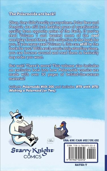 The Polarnoids are back! Okay, they didn't really go anywhere. Polar Bear and Penguin are still just making puns of questionable quality from opposite poles of the Earth. If you've read Volume 1 and wanted more of the cool wordplay found there, this collection is the book for you. If you never read Volume 1, this can still be the book for you! With each comic strip standing alone, you can bounce around and read them in basically any order you want. But wait! There's more! This volume also includes an exclusive look into how Polarnoids comics are made with over 30 pages of behind-the-scenes material! Collects Polarnoids #101-200 and includes BTS with BTS: Making a Polarnoid (or Two).