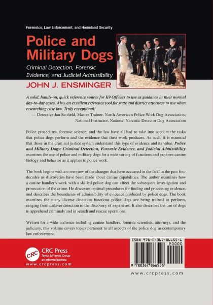 John J. Ensminger, a lawyer practicing in New York, has written extensively on tax and financial issues, and more recently on legal, scientific and judicial procedures affecting the functions, rights and protection of specially trained dogs. His most current research focuses on canine scent identification and criminal prosecution applications. His publications include: Service and Therapy Dogs in American Society: Science, Law and the Evolution of Canine Caregivers; Money Laundering, Terrorism, and Financial Institutions; the USA Patriot Act Monitor. Contributions on canine legal issues have appeared in the Journal of Animal Law, GP Solo: ABA General Practice and Tax Notes. He received his BA from the University of California at Berkeley in zoology and marine biology, and earned his JD and LLM degrees from Hastings College of the Law, and New York University School of Law. Contributors: John G. Grubbs, president of United States Bomb Dogs, Inc., was a law enforcement officer for 20 years with the Explosives Detection Canine Unit of the U.S. Secret Service, in which capacity he guarded U.S. presidents, vice presidents, and world leaders. Tadeusz Jezierski, Ph.D., head of the Department of Animal Behavior at the Institute of Genetics and Animal Breeding of the Polish Academy of Science, has published 65 scientific papers, including studies on canine scent detection. L.E. Papet, Executive Director of K9 Resources, LLC, in Ohio, who has developed 170 protocols for training, testing, and deploying canine units.
