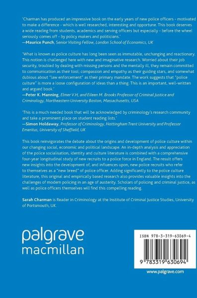 This book reinvigorates the debate about the origins and development of police culture within our changing social, economic and political landscape. An in-depth analysis and appreciation of the police socialisation, identity and culture literature is combined with a comprehensive four-year longitudinal study of new recruits to a police force in England. The result offers new insights into the development of, and influences upon, new police recruits who refer to themselves as a "new breed" of police officer. Adding significantly to the police culture literature, this original and empirically based research also provides valuable insights into the challenges of modern policing in an age of austerity. Scholars of policing and criminal justice, as well as police officers themselves will find this compelling reading.