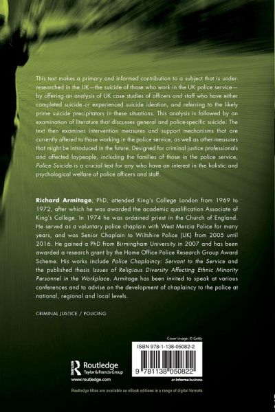 This text makes a primary and informed contribution to a subject that is under-researched in the UK - the suicide of those who work in the UK police service - by offering an analysis of UK case studies of officers and staff who have either completed suicide or experienced suicide ideation, and referring to the likely prime suicide precipitators in these situations. This analysis is followed by an examination of literature that discusses general and police-specific suicide. The text then examines intervention measures and support mechanisms that are currently offered to those working in the police service, as well as other measures that might be introduced in the future. Designed for criminal justice professionals and affected laypeople, including the families of those in the police service, Police Suicide is a crucial text for any who have an interest in the holistic and psychological welfare of police officers and staff.