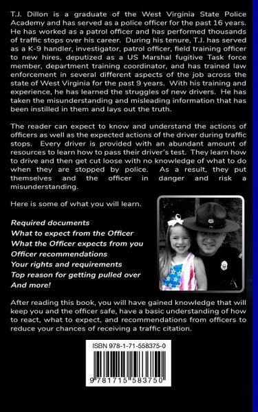 After years of encountering thousands of new drivers on traffic stops, this veteran police officer has discovered a lot of confusion that new drivers have when dealing with police. He has laid out exactly what the driver can expect from the officer as well as what the officer expects from the driver when being pulled over in West Virginia. You will learn about required documents, your rights and requirements, officer recommendations, top reasons for getting stopped by police and more! After reading, you will have gained knowledge that will keep you and the officer safe, have a basic understanding of how to react, what to expect, and recommendations from officers to reduce your chances of receiving a ticket!