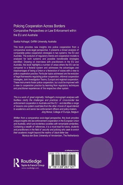 This book provides new insights into police cooperation from a comparative socio-legal perspective. It presents a broad analysis of comparable police cooperation strategies in two systems: the EU and Australia. The evolution of regulatory trends and cooperation models is analysed for both systems and possible transferable strategies identified. Drawing on interviews with practitioners in the EU and Australia this book highlights a number of areas where the EU can be compared to a federal system and addresses the advantages and disadvantages of being a Union or a federation of states with a view to police cooperation practice. Particular topics addressed are the evolution of legal frameworks regulating police cooperation, informal cooperation strategies, Joint Investigation Teams, Europol and regional cooperation. These instruments foster police cooperation, but could be improved with a view to cooperation practice by learning from regulatory techniques and practitioner experiences of the respective other system.