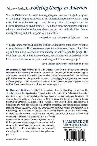 Policing Gangs in America describes the assumptions, issues, problems, and events that define the police response to gangs in America today. The primary focus of the book is on the gang unit officers themselves and the environment in which they work. The book is broadly focused on describing how gang units respond to community gang problems and analyzes the police response to gangs in the context of community policing. The book also makes several recommendations for policy and practice changes related to police gang units.
