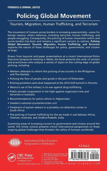 The movement of humans across borders is increasing exponentially-some for benign reasons, others nefarious, including terrorism, human trafficking, and people smuggling. Consequently, the policing of human movement within and across borders has been and remains a significant concern to nations. Policing Global Movement: Tourism, Migration, Human Trafficking, and Terrorism explores the nature of these challenges for police, governments, and citizens at large. Drawn from keynote and paper presentations at a recent International Police Executive Symposium meeting in Malta, the book presents the work of scholars and practitioners who analyze a variety of topics on the cutting edge of global policing, including: Western attempts to reform the policing of sex tourists in the Philippines and Gambia Policing the flow of people and goods in the port of Rotterdam Policing protestors and what happened at the 2010 G20 Summit in Toronto Mexico's use of the military in its war against drug trafficking Public-private cooperation in the fight against organized crime and terrorism in Australia Recommendations for police reform in Afghanistan Sweden's national counterterrorism unit Treatment of asylum seekers in a privately run detention center in South Africa The policing of human trafficking for the sex trade in sub-Saharan Africa, Vietnam, Australia, and Andhra Pradesh, India Examining areas of increasing concern to governments and citizens around the world, this timely volume presents critical international perspectives on these ongoing global challenges that threaten the safety of humans worldwide.