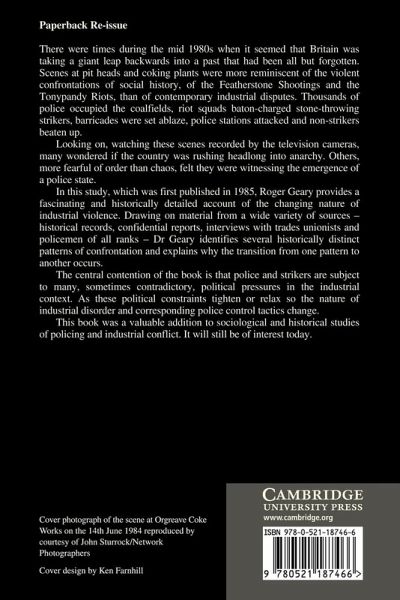 The re-emergence of prolonged and bitter industrial violence during the 1984-85 miners' dispute prompted many onlookers to speculate that British society was rushing headlong into anarchy. Others, more fearful of order than chaos, felt that they were witnessing the emergence of a police state. In this 1985 study, Dr Geary provides a fascinating and detailed account of the changing nature of industrial violence, in which historic episodes such as the Featherstone Shootings and Tonypandy Riots are examined as part of a general analysis of the shifting patterns of industrial confrontation. His central contention is that both police and strikers are subject to many, sometimes contradictory, political pressures in the industrial context. As these political constraints tighten or relax so the nature of industrial disorder and the corresponding tactics of police control change. This balanced appraisal of industrial violence illumintes what has become a political issue of the utmost significance.