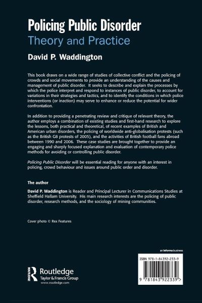 This book draws on a wide range of studies of collective conflict and the policing of crowds and social movements to provide an understanding of the causes and management of public disorder. It seeks to describe and explain the processes by which the police interpret and respond to instances of public disorder, to account for variations in their strategies and tactics, and to identify the conditions in which police interventions (or inaction) may serve to enhance or reduce the potential for wider confrontation. In addition to providing a penetrating review and critique of relevant theory, the author employs a combination of existing studies and first-hand research to explore the lessons, both practical and theoretical, of recent examples of British and American urban disorders, the policing of worldwide anti-globalisation protests (such as the British G8 protests of 2005), and the activities of British football fans abroad between 1990 and 2006. These case studies are brought together to provide an engaging and sharply focused explanation and evaluation of contemporary police methods for avoiding or controlling public disorder. Policing Public Disorder will be essential reading for anyone with an interest in policing, crowd behaviour and issues around public order and disorder.