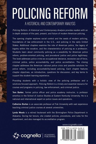 Policing Reform: A Historical and Contemporary Analysis provides readers with an in-depth analysis of the past, present, and future of modern American policing. The opening chapter explores social control and the seeds of modern policing, foundations of law enforcement in the U.S., and policing in the early United States. Additional chapters examine the role of American police, the legacy of bigotry within the vocation, and the characteristics of policing as a profession. Students learn about community policing as a possibility for American police reform, problem-oriented policing, and procedural justice and police legitimacy. The book addresses police crime as occupational deviance, excessive use of force, criminal police, police accountability, and police accreditation. The closing chapter addresses the American national police crisis and possible solutions for police reform, including accountability-based policing. Each chapter features chapter objectives, an introduction, questions for discussion, and key terms to support the student learning experience. Providing students with a holistic view of the policing profession and a solutions-focused approach, Policing Reform is a timely and essential resource for courses and programs in policing, law enforcement, and criminal justice.