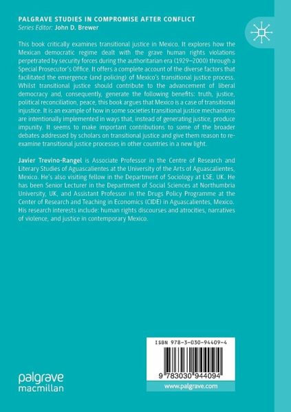 This book critically examines transitional justice in Mexico. It explores how the Mexican democratic regime dealt with the grave human rights violations perpetrated by security forces during the authoritarian era (1929-2000) through a Special Prosecutor's Office. It offers a complete account of the diverse factors that facilitated the emergence (and policing) of Mexico's transitional justice process. Whilst transitional justice should contribute to the advancement of liberal democracy and, consequently, generate the following benefits: truth, justice, political reconciliation, peace, this book argues that Mexico is a case of transitional injustice. It is an example of how in some societies transitional justice mechanisms are intentionally implemented in ways that, instead of generating justice, produce impunity. It makes important contributions to some of the broader debates addressed by scholars on transitional justice and gives them reason to re-examine transitional justiceprocesses in other countries in a new light.