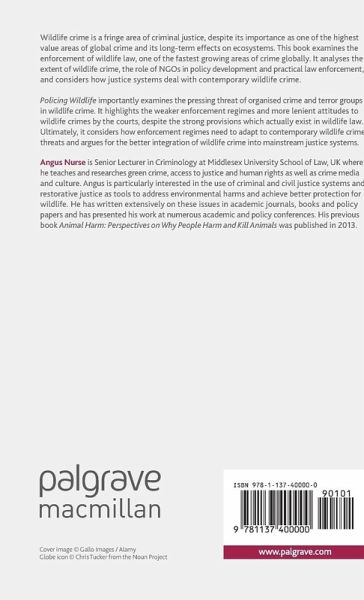 Policing Wildlife examines both the extent and enforcement of wildlife law, one of the fastest growing areas of crime globally. The book considers how enforcement regimes need to adapt to contemporary wildlife crime threats, particularly those posed by terrorism and organised crime.