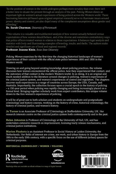 "As the position of women in the world undergoes perhaps more scrutiny than ever, there isn't a better time to situate the present through an analysis of the past. Policing Women shines an important light on women's actual experiences of being policed across the Western world. These fascinating histories (all based upon original empirical research) serve to illuminate issues around power, identity and control, yet also dispel many of the complacent assumptions about gender and offending."