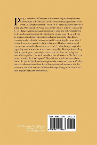 A volume in The Achievement Gap, Research, Practice, and Policy C. Kent McGuire and Vivian W. Ikpa, Series Editors This is the second book in the series examining student achievement. The chapters in this book reflect the scholarly papers presented at the July 2006 Education Policy, Leadership Summer Institute (EPLSI) by K-16 educators, researchers, community advocates, and policymakers who work in urban communities. The Institute serves as a place where individuals interested in scholarly discussions and research directly related to: (1) how data can be utilized to inform policy; (2) examining the urban school context from the perspectives of the polity, school leaders; students; and other related internal and external actors; and (3) identifying strategies for improving student academic achievement can gather. During this week-long Institute, participants examined the structural problems and policy tensions affecting urban communities and student achievement. The Institute's theme, Meeting the Challenges of Urban Schools is reflected throughout this book. Specifically, this edition explores the interrelated aspects of policy, practice and research and how they affect academic achievement. The five sections in this book examine different challenges facing urban schools and their impact on student performance.