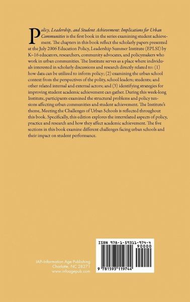 A volume in The Achievement Gap, Research, Practice, and Policy C. Kent McGuire and Vivian W. Ikpa, Series Editors This is the second book in the series examining student achievement. The chapters in this book reflect the scholarly papers presented at the July 2006 Education Policy, Leadership Summer Institute (EPLSI) by K-16 educators, researchers, community advocates, and policymakers who work in urban communities. The Institute serves as a place where individuals interested in scholarly discussions and research directly related to: (1) how data can be utilized to inform policy; (2) examining the urban school context from the perspectives of the polity, school leaders; students; and other related internal and external actors; and (3) identifying strategies for improving student academic achievement can gather. During this week-long Institute, participants examined the structural problems and policy tensions affecting urban communities and student achievement. The Institute's theme, Meeting the Challenges of Urban Schools is reflected throughout this book. Specifically, this edition explores the interrelated aspects of policy, practice and research and how they affect academic achievement. The five sections in this book examine different challenges facing urban schools and their impact on student performance.