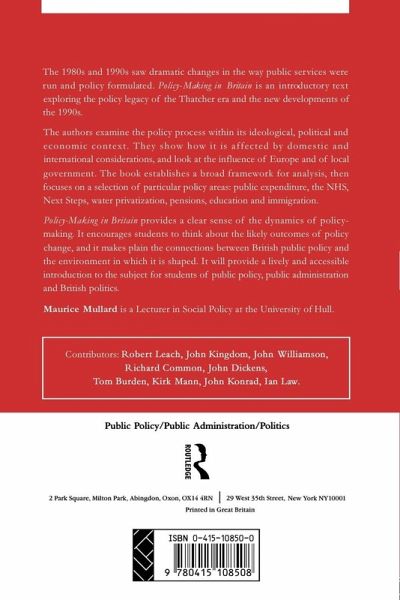 The book provides a broad-based introduction to policy-making in Britain, exporing the legacy of the Thatcher era and charting the new context of policy-making in the 1990s. The authors examine the policy process within its ideological, political and economic context, discussing both the influence of Europe and the influence of local government. Having established a broad framework for analysis, the book focuses on a selection of particular policy areas; public expenditure, the NHS, Next Steps, water privatisation, pensions, education and immigration. The aim of the book is to give a sense of the actual dynamics of policy-making and to encourage students to think about the likely outcomes of policy-change, while making the connections between British public policy and the environment in which it is shaped.