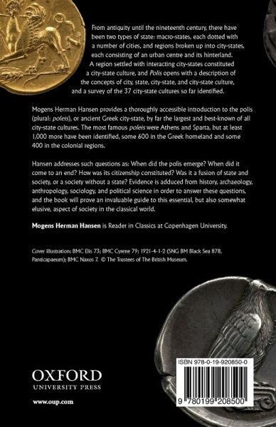 An accessible introduction to the polis (plural: poleis), or ancient Greek city-state. Mogens Herman Hansen addresses such topics as the emergence of the polis, its size and population, and its political culture, ranging from famous poleis such as Athens and Sparta through more than 1,000 known examples.