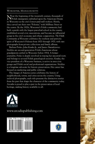 Near the beginning of the twentieth century, thousands of Polish immigrants embarked upon the American Dream in Worcester as the city's lowest-paid mill workers. Slowly, they carved out their own "Polonia," with Millbury Street as the center. By the 1920s, Worcester's Polish community had built a parish with the largest parochial school in the county, established several civic associations, and become an influential group in the city's economy and ethnic composition. The Polish Community of Worcester celebrates the resilient and patriotic spirit of Worcester's Polonia from 1870 through 1970, with rare photographs from private collections and family albums.