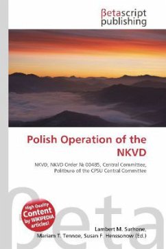 Please note that the content of this book primarily consists of articles available from Wikipedia or other free sources online. Polish operation of the NKVD refers to the coordinated actions of the NKVD in 1937-1938, done according to NKVD Order 00485 " - " ("On the liquidation of the Polish diversionist and espionage groups and POW units"). The order was approved on August 9, 1937 by the VKP(b) Central Committee Politburo, and was signed by Nikolai Yezhov on August 11, 1937. It was distributed to the local subdivisions of the NKVD simultaneously with Yezhov''s secret letter, " - , , , " ("On fascist-resurrectionist, spying, diversional, defeationist, and terrorist activity of Polish intelligence in the USSR"). The operation was the second in a series of national operations of the NKVD, justified by the Soviet government by the fear of a fifth column (in the expectation of war with "the most probable adversary", that is, Germany), and by thenotion of a "hostile capitalist surrounding", bent on destabilizing the Soviet Union.