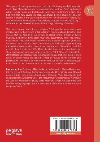 This book examines the interface between Polish popular music and screen media against the background of Polish history, cinema, and popular culture and situates that interface in a local as well as global context. It looks at Polish musicals, biographical films about musicians, documentary films and, finally, music videos. The author draws attention to the immense popularity of musical comedies in Polish interwar cinema, the enduring appeal of musical genres during the period of state socialism, despite their low status in film criticism, and the re-birth of musicals in the 2010s. Mazierska also discusses the most important stars, directors and authors of songs presented in Polish films, and points to the effect of technological changes on inception and transformation of music-centred genres of screen media, including the effect of YouTube on their growth and preservation. The book is informed by the question of how parochial and universal is Polish popular music and its screen representation.