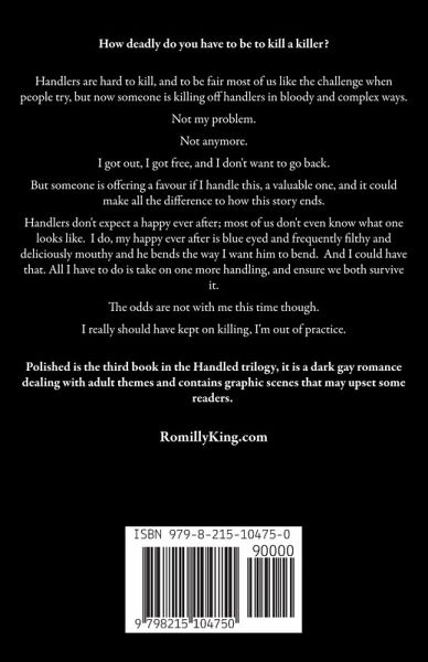 How deadly do you have to be to kill a killer? Handlers are hard to kill, and to be fair most of us like the challenge when people try, but now someone is killing off handlers in bloody and complex ways. Not my problem. Not anymore. I got out, I got free, and I don't want to go back. But someone is offering a favour if I handle this, a valuable one, and it could make all the difference to how this story ends. Handlers don't expect a happy ever after; most of us don't even know what one looks like. I do, my happy ever after is blue eyed and frequently filthy and deliciously mouthy and he bends the way I want him to bend. And I could have that. All I have to do is take on one more handling, and ensure we both survive it. The odds are not with me this time though. I really should have kept on killing, I'm out of practice. Polished is the third book in the Handled trilogy, it is a dark gay romance dealing with adult themes and contains graphic scenes that may upset some readers.
