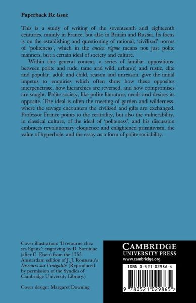 This is a study of writing of the seventeenth and eighteenth centuries, mainly in France, but also in Britain and Russia. Its focus is on the establishing and questioning of rational, 'civilized' norms of 'politeness', which in the ancien régime meant not just polite manners, but a certain ideal of society and culture. Within this general context, a series of familiar oppositions, between polite and rude, tame and wild, urban(e) and rustic, élite and popular, adult and child, reason and unreason, gives the initial impetus to enquiries which often show how these opposites interpenetrate, how hierarchies are reversed, and how compromises are sought. Polite society, like polite literature, needs and desires its opposite. The ideal is often the meeting of garden and wilderness, where the savage encounters the civilized and gifts are exchanged. Professor France points to the centrality, but also the vulnerability, in classical culture, of the ideal of 'politeness', and his discussion embraces revolutionary eloquence and enlightened primitivism, the value of hyperbole, and the essay as a form of polite sociability.