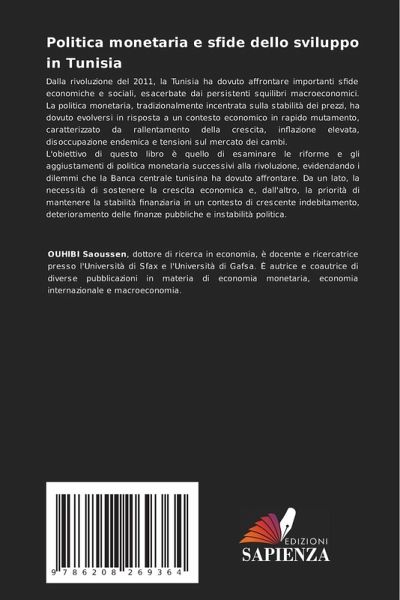 Dalla rivoluzione del 2011, la Tunisia ha dovuto affrontare importanti sfide economiche e sociali, esacerbate dai persistenti squilibri macroeconomici. La politica monetaria, tradizionalmente incentrata sulla stabilità dei prezzi, ha dovuto evolversi in risposta a un contesto economico in rapido mutamento, caratterizzato da rallentamento della crescita, inflazione elevata, disoccupazione endemica e tensioni sul mercato dei cambi.L'obiettivo di questo libro è quello di esaminare le riforme e gli aggiustamenti di politica monetaria successivi alla rivoluzione, evidenziando i dilemmi che la Banca centrale tunisina ha dovuto affrontare. Da un lato, la necessità di sostenere la crescita economica e, dall'altro, la priorità di mantenere la stabilità finanziaria in un contesto di crescente indebitamento, deterioramento delle finanze pubbliche e instabilità politica.